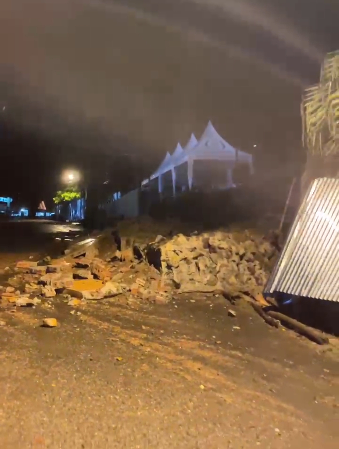 Menurut keterangan vidio yang di kirim warga yang sempat melintas jalur tersebut Nisa menyatakan tembok taman kota roboh,