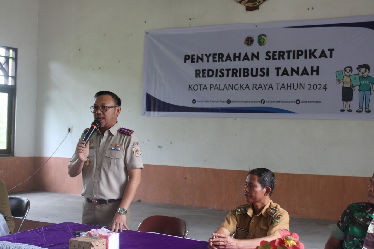 Kepala Kantor BPN Kota Palangka Raya Indra Gunawan Saat Menyerahkan Sertipikat Redistribusi Tanah Beberapa Waktu yang lalu