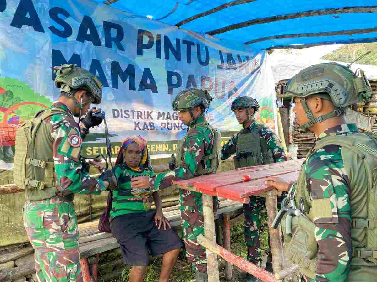 SINAR MERDEKA ,Pintu Jawa, Papua – Dengan semangat pantang menyerah, warga Kampung Wunggi Distrik Mage’abume Papua Tengah menembus medan berat untuk membawa hasil pertanian mereka ke Pos Pintu Jawa, Satgas Yonif 700/Wira Yudha Cakti. Tak sekadar berniaga, para pejuang dari tanah Papua ini juga mendapat bantuan pengobatan dari prajurit TNI yang setia mendampingi rakyat. Sabtu (03/05)
