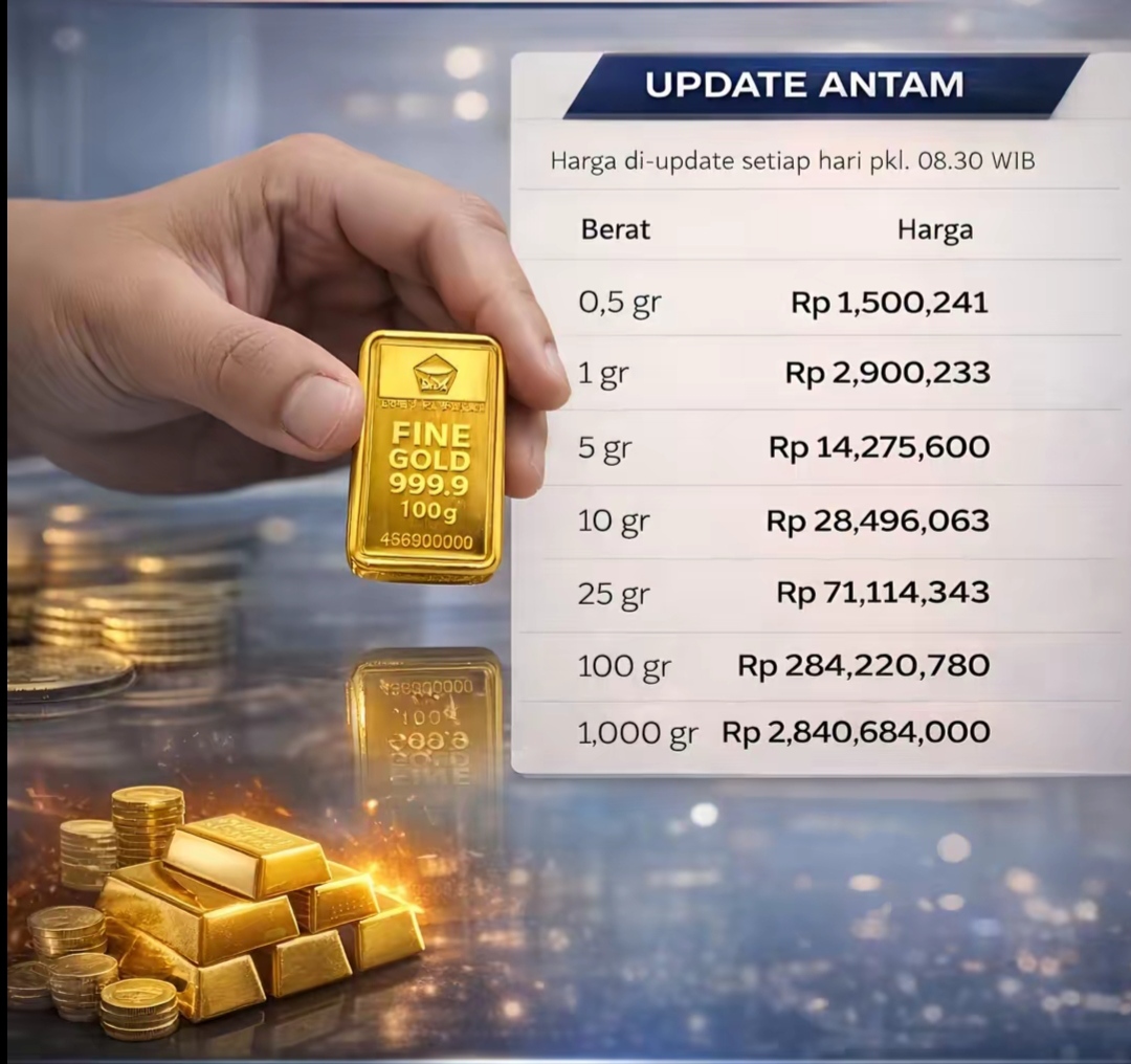 Selain itu, untuk Galeri24 ke angka Rp2.818.000 per gram, sedangkan Antam kini di harga Rp2.937.000 per gram.