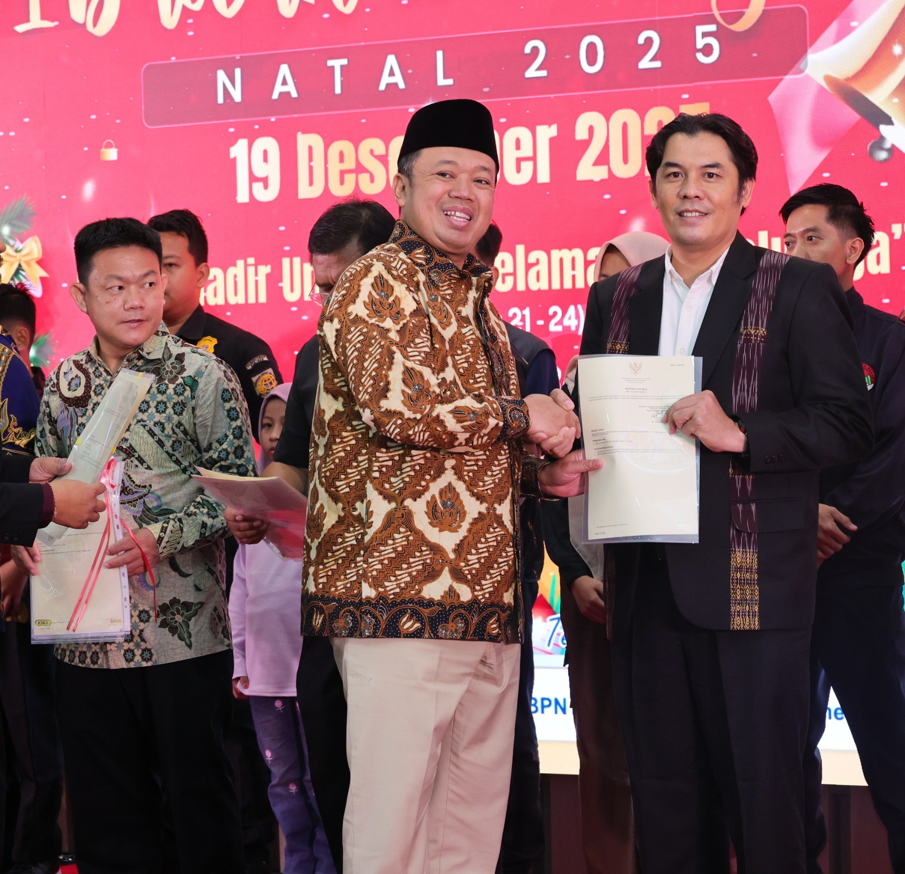 SINARMERDEKA.CO, JAKARTA – Dalam Perayaan Natal Kementerian Agraria dan Tata Ruang/Badan Pertanahan Nasional (ATR/BPN) Tahun 2025, Menteri ATR/Kepala BPN, Nusron Wahid, menyerahkan 14 Sertipikat untuk Rumah Ibadah dan Yayasan Kristiani kepada delapan penerima.