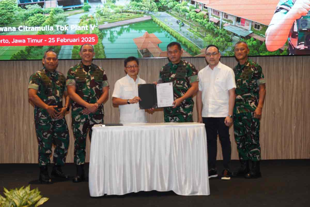 SINAR MERDEKA ,MOJOKERTO, tniad.mil.id – Kepala Staf Angkatan Darat (Kasad), Jenderal TNI Maruli Simanjuntak, M.Sc., meresmikan Plant 5B Extension PT Arwana Citramulia Tbk. di Mojokerto, Jawa Timur, sekaligus menandatangani nota kesepahaman (MoU) antara PT Arwana dan TNI AD, Selasa (25/2/2025).