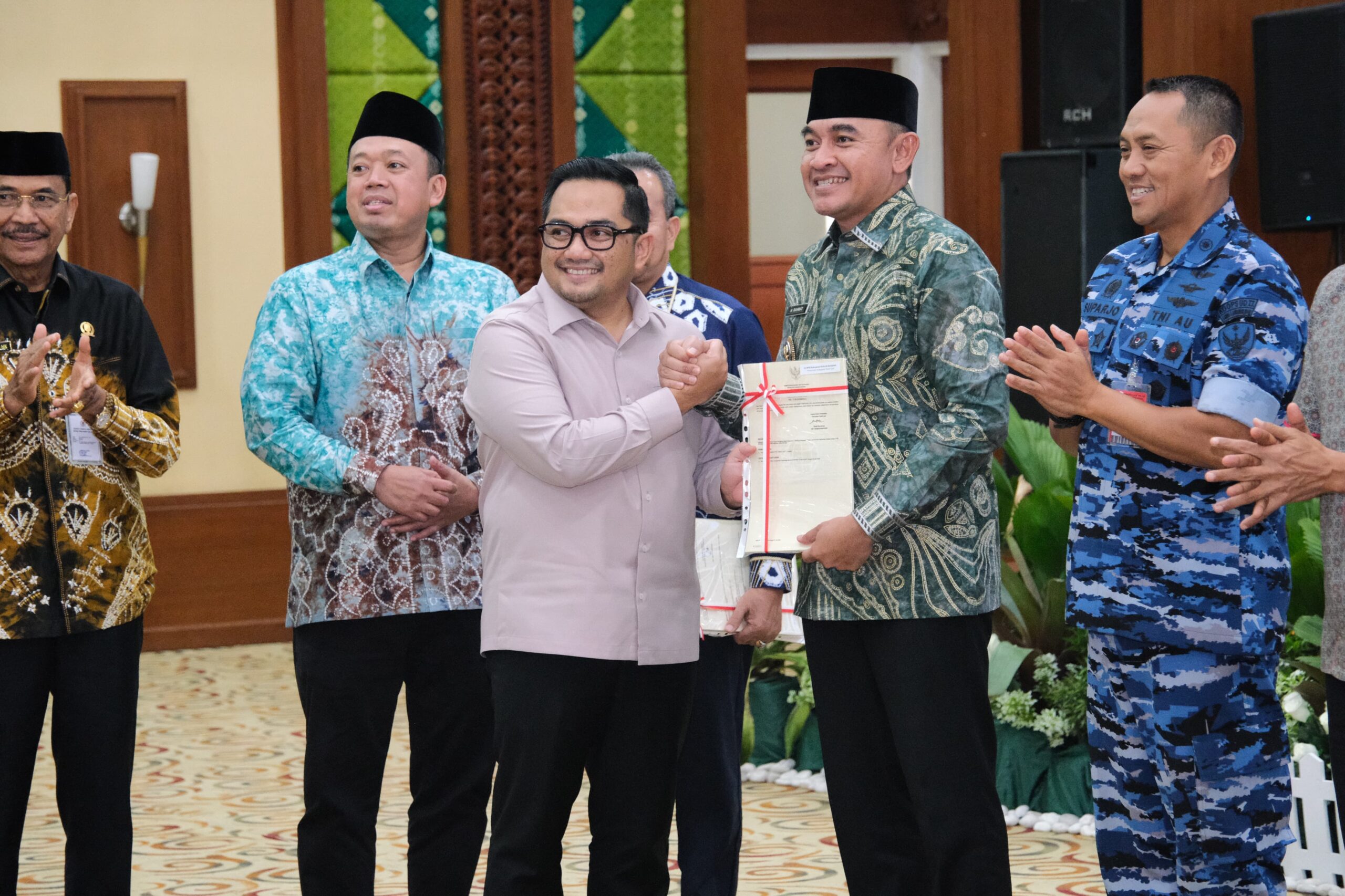 Ketua Komisi II DPR RI, Muhammad Rifqinizamy Karsayuda dan Menteri ATR/Kepala BPN, Nusron Wahid Menyerahkan Sertipikat Tanah Ulayat