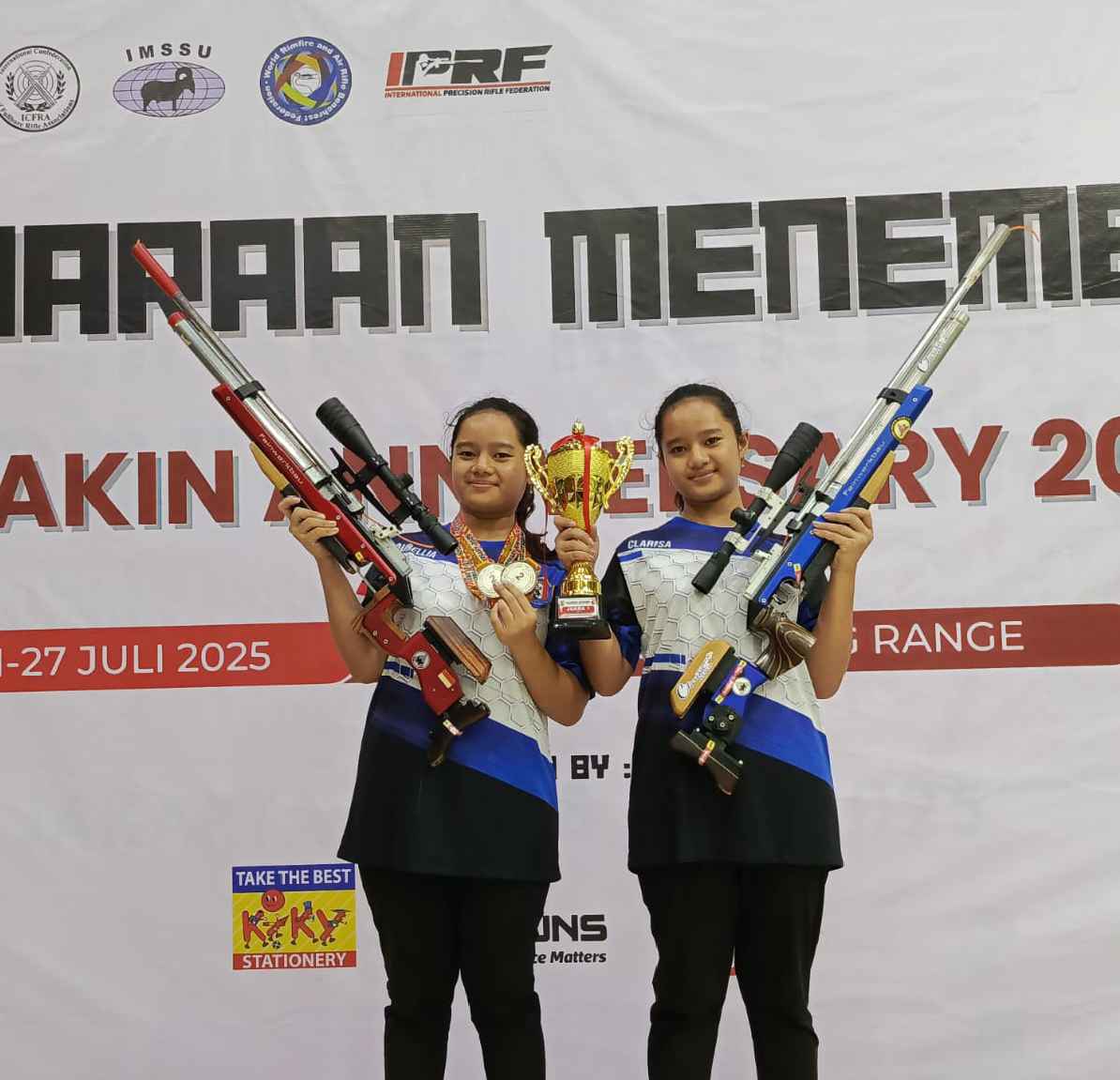 SINAR MERDEKA ,Depok – Dua atlet menembak asal Kota Depok, Aurellia dan Clarisa, berhasil mengharumkan nama daerah dengan meraih medali emas dan perak di ajang kejuaraan nasional yang digelar dalam rangka Anniversary PB Perbakin 2025. Kompetisi bergengsi ini berlangsung pada 25 – 27 Juli di Lapangan Tembak Senayan, Jakarta.