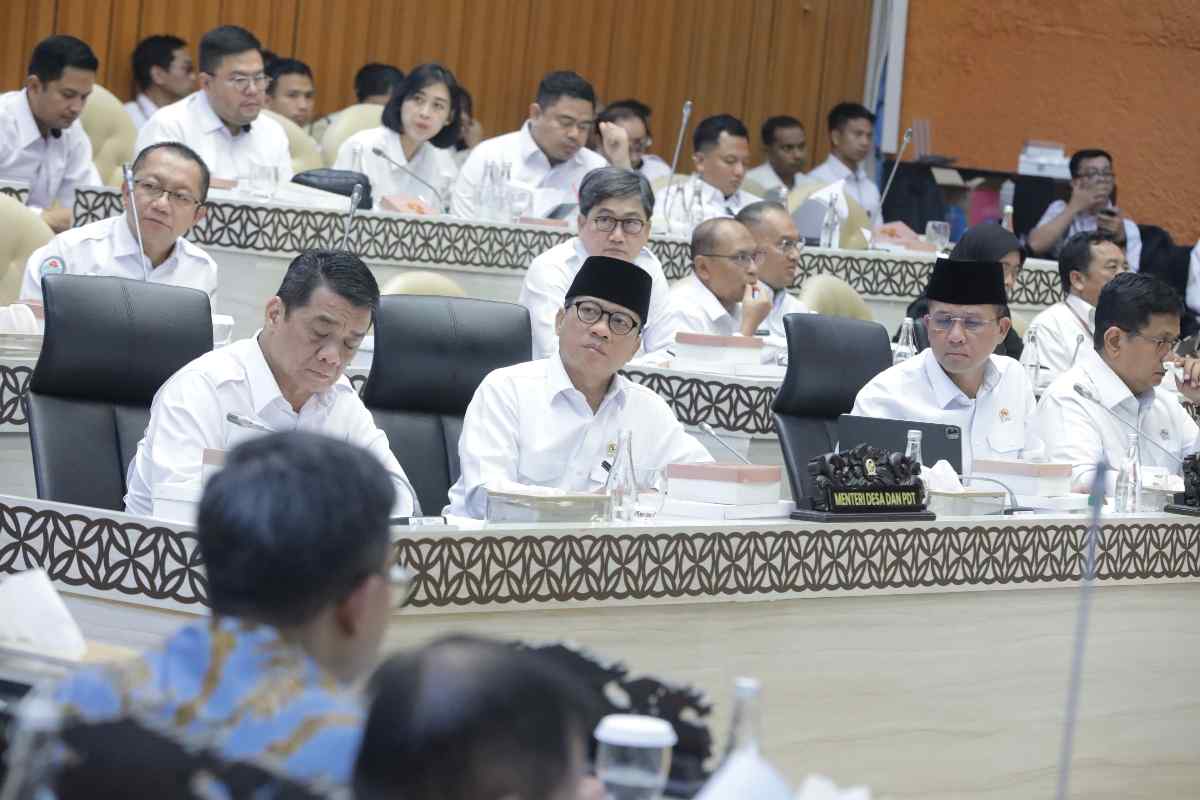 SINAR MERDEKA ,Jakarta – Menteri Desa dan Pembangunan Daerah Tertinggal (Mendes PDT) Yandri Susanto bersama Wakil Mendes PDT Ariza Patria menghadiri Rapat Kerja dengan Komisi V DPR RI, Senin (7/7/2025).