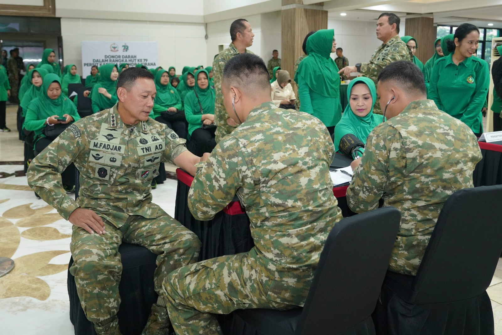 SINAR MERDEKA ,Jakarta – Panglima Kostrad (Pangkostrad) Letjen TNI Mohammad Fadjar, MPICT didampingi Ketua Persit Kartika Chandra Kirana Gabungan Kostrad, Ibu Ira Fadjar mengikuti kegiatan donor darah dalam rangka menyambut HUT Ke-64 Kostrad yang dilaksanakan di Ruang Mandala, Markas Kostrad, Gambir, Jakarta Pusat. Rabu (12/2/2025).