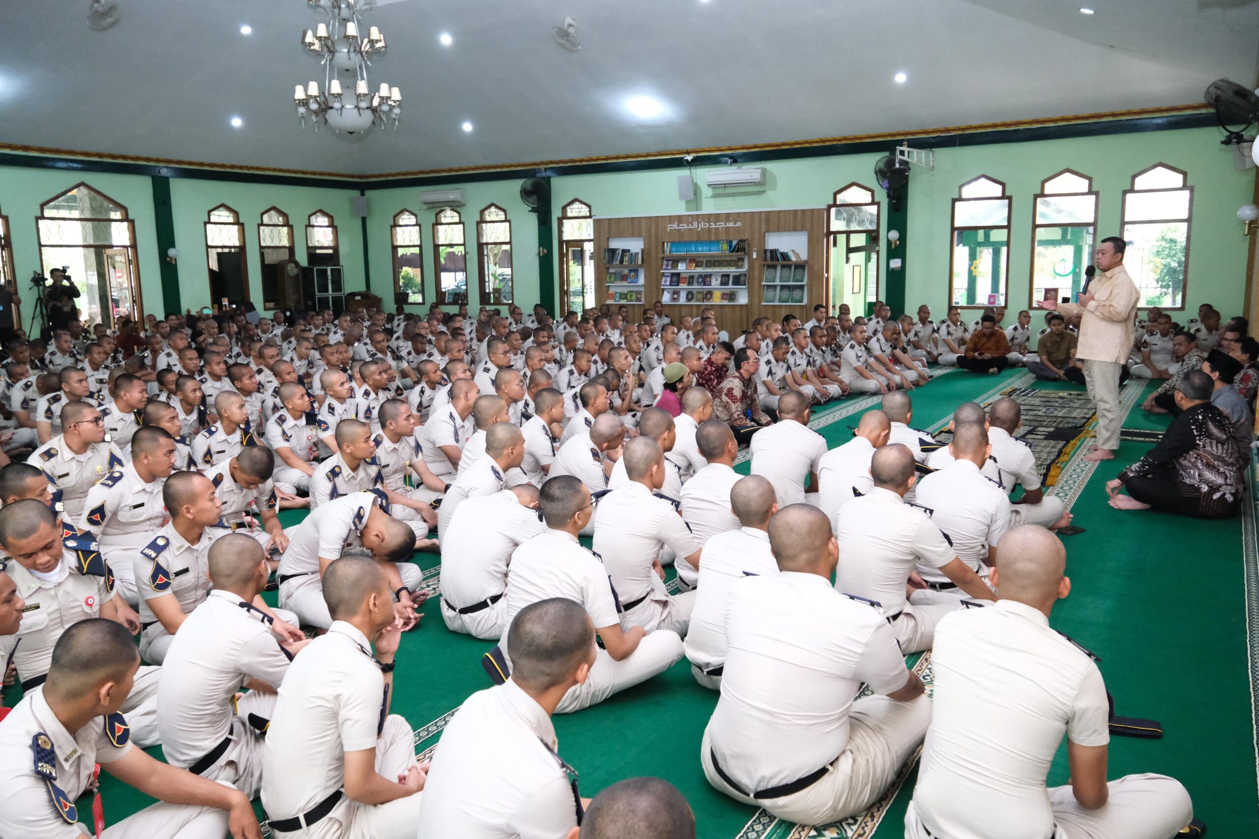 Menteri Nusron juga memberikan nasihat singkat kepada para taruna seusai beribadah di Masjid Darunnajah STPN.