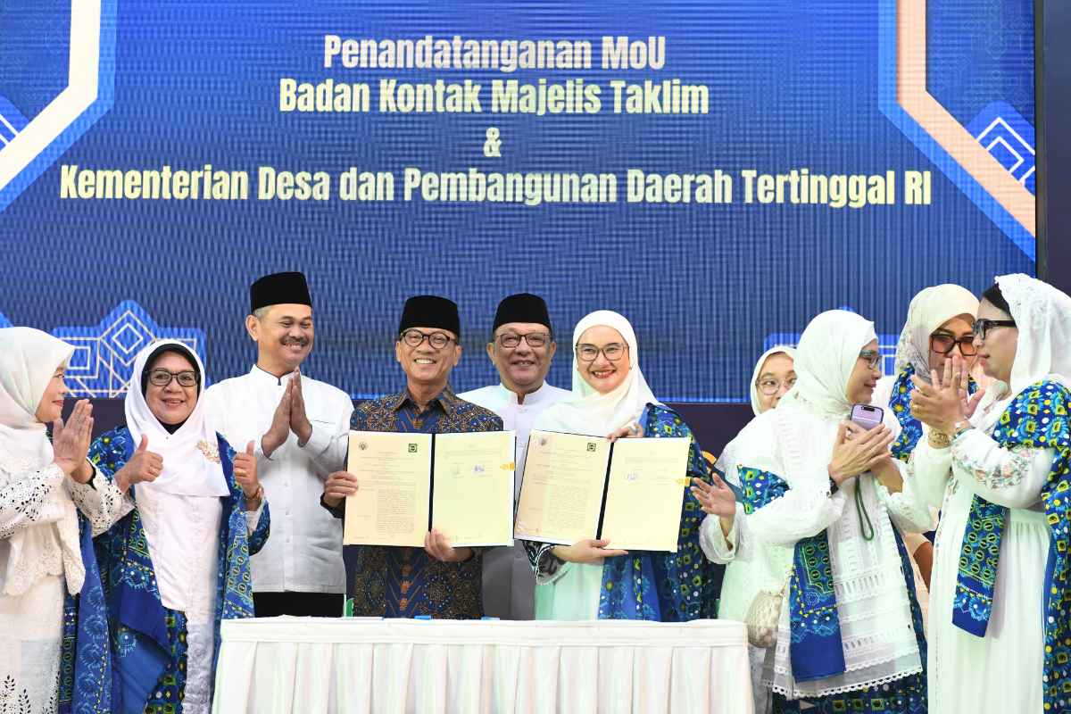 “BKMT (Badan Kontak Majelis Taklim) ini punya peran strategis tentang pemberdayaan umat. Sebab di desa hari ini banyak persoalan yang semakin rumit, dan ini perlu kerjasama dan komitmen kita, misalnya narkoba yang merajalela,” jelas Mendes Yandri saat menghadiri acara muktamar Badan Kontak Majelis Taklim (BKMT) sekaligus penandatanganan MoU antara Kemendes PDT dan BKMT, di Gedung Asrama Haji Jakarta Timur, Jumat (26/9/2025).