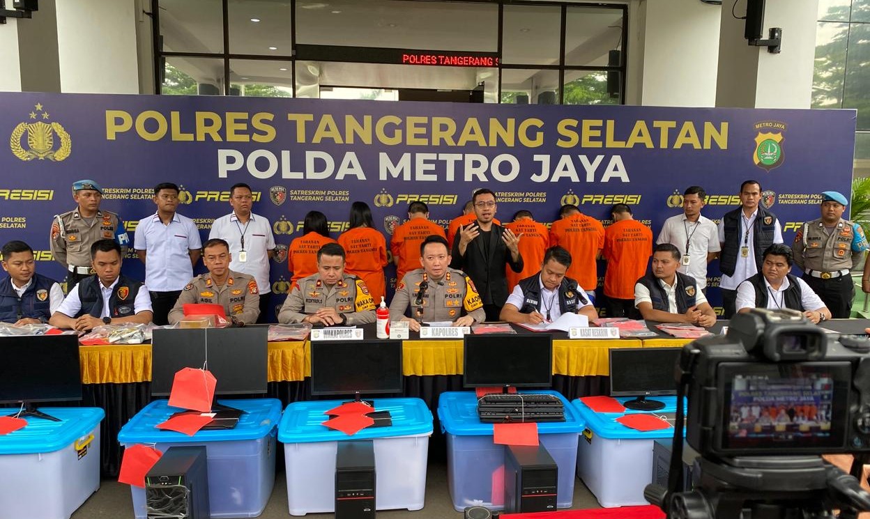 Satuan Reskrim Polres Tangsel berhasil mengungkap kasus judi online (judol) jaringan internasional dengan mengamankan tujuh (7) orang tersangka terdiri dari lima tersangka laki laki dan dua orang perempuan.