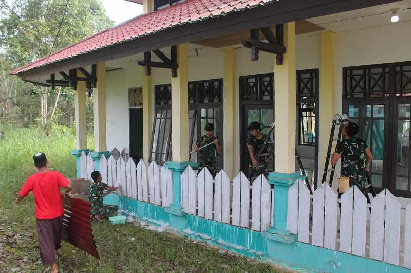 SINAR MERDEKA ,Nanga Badau – Dalam rangka mempererat hubungan dengan masyarakat, Satgas Pamtas RI-Malaysia Yonkav 3/AC Pos Kotis melaksanakan kegiatan Karya Bakti perbaikan Mushola AT-Taqwa yang terletak di Desa Badau, Kecamatan Badau Kapuas Hulu. Sabtu, (14/6/2025).