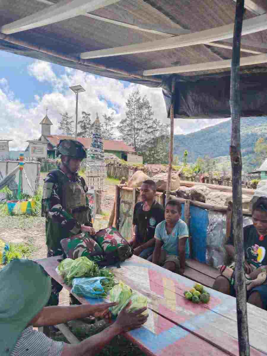 Tak hanya itu, anggota Pos Sinak juga membeli hasil kebun seperti sayur mayur, buah, dan rempah-rempah dari para mama-mama Papua. Kehadiran mereka membawa semangat dan tawa, mempererat hubungan yang penuh kekeluargaan.