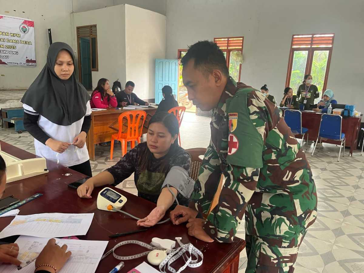 SINAR MERDEKA ,Kapuas Hulu – Satgas Satgas Pamtas RI-Malaysia Yonzipur 5/ABW turut serta membantu Puskesmas Sebindang menggelar Pos Pembinaan Terpadu (Posbindu) kembali mengadakan pemeriksaan kesehatan gratis di Gedung Balai Sebindang, Kecamatan Badau, Kabupaten Kapuas hulu, Sabtu (8/3/2025).