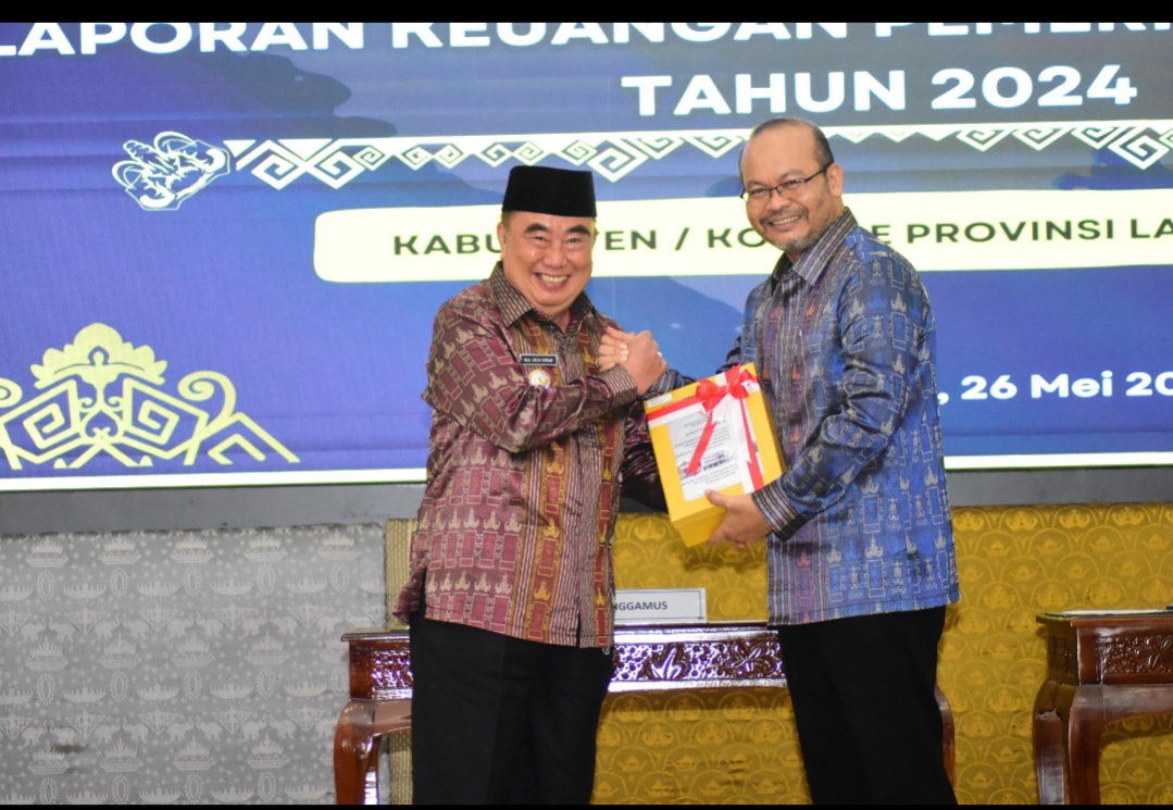 Bupati Tanggamus, Drs. H. Moh. Saleh Asnawi, M.A., M.H menerima langsung Laporan Hasil Pemeriksaan (LHP) LKPD 2024, Senin (26/5/2025) di kantor BPK RI Perwakilan Lampung. LHP diserahkan langsung kepala BPK Perwakilan Lampung, Nugroho Heru Wibowo, S.E., M.Comm., CSFA, ACPA, CA, Ak.