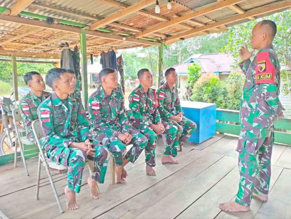 Perwira Hukum Satgas Pamtas, Kapten Chk Kusnadi selaku pemateri, menekankan pentingnya personel Satgas memahami peran sebagai aparat negara sekaligus sebagai contoh bagi warga perbatasan.