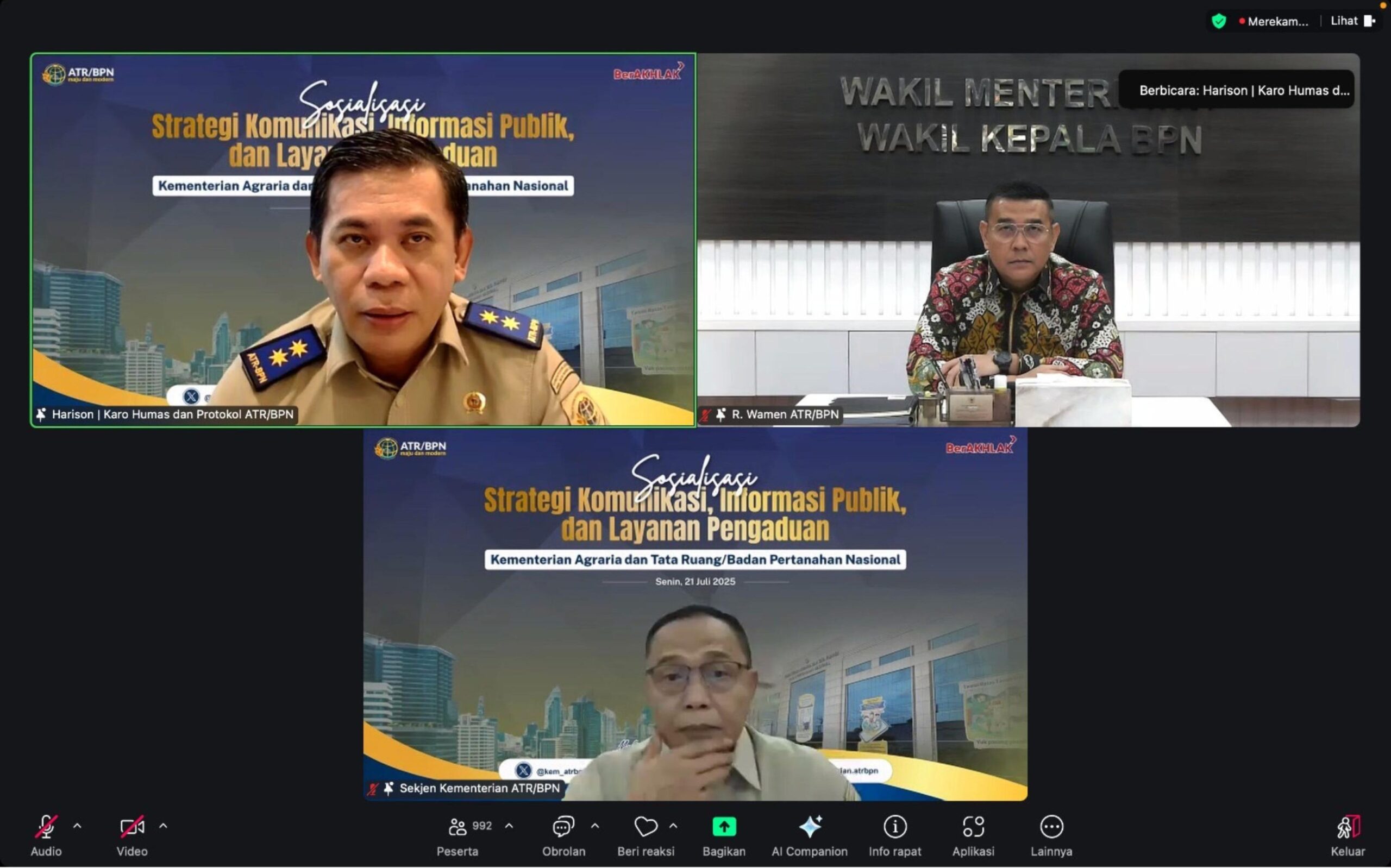Dalam kegiatan yang berlangsung secara daring ini, Wakil Menteri ATR/Wakil Kepala BPN, Ossy Dermawan hadir membuka sekaligus memberikan pengarahan awal.