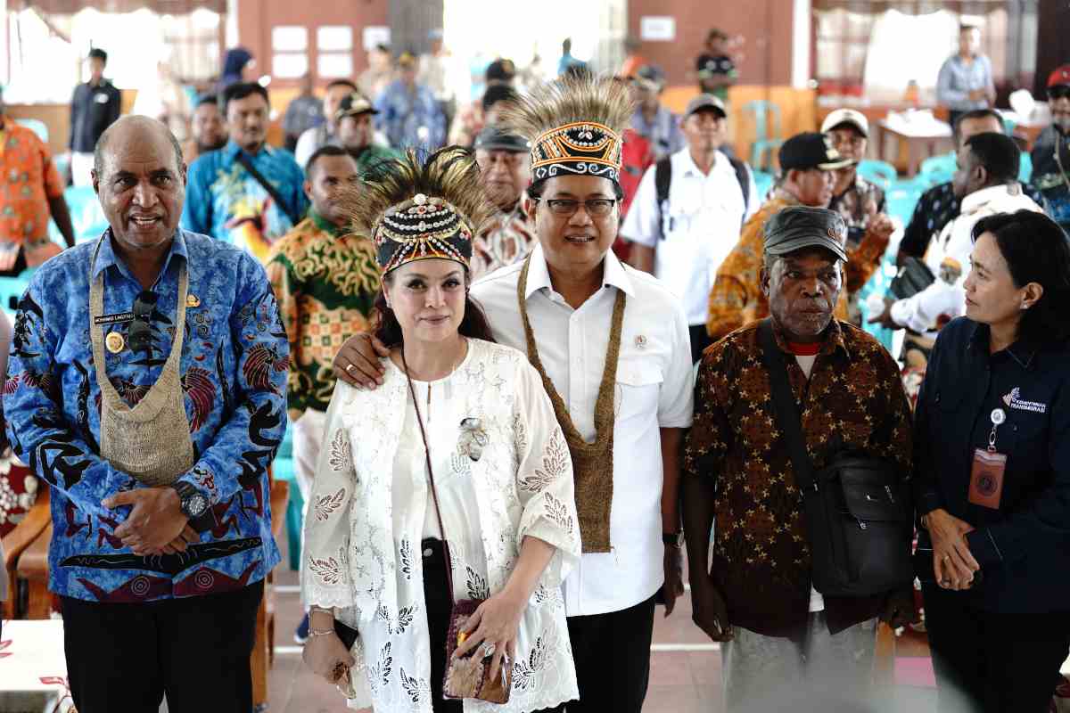 SINAR MERDEKA ,Di Gedung Serbaguna Lodwijk Mandacan, Kampung Udapi Hilir, Distrik Prafi, Kabupaten Manokwari, Provinsi Papua Barat, 18/9/2025, puluhan transmigran dan warga lokal yang mendiami kawasan transmigrasi berkumpul. Di gedung itu mereka mendapat sosialisasi, pemaparan, terkait paradigma baru transmigrasi oleh Wakil Menteri Transmigrasi Viva Yoga Mauladi dan Wakil Gubernur Papua Barat Mohamad Lakotani Sirua.