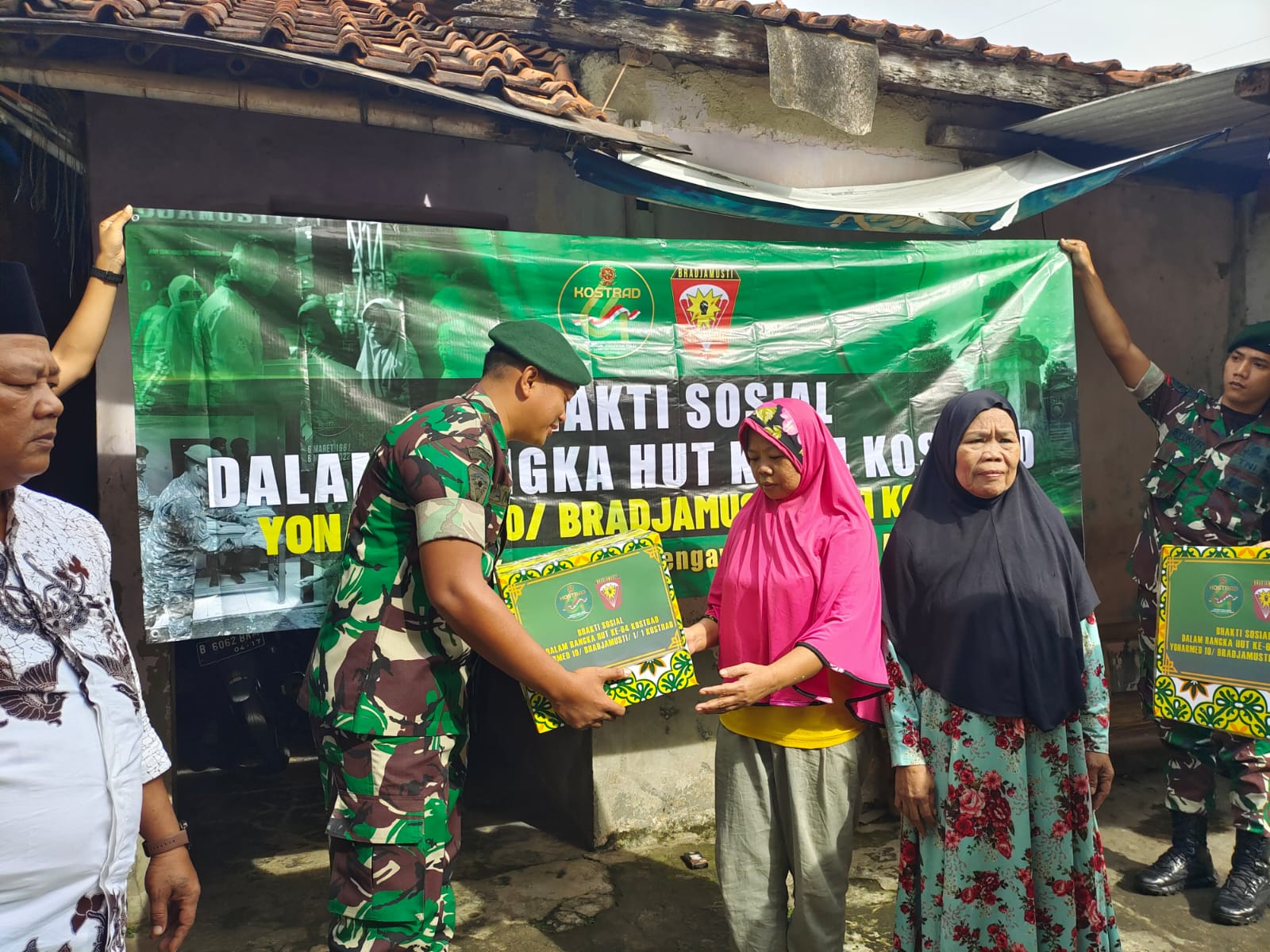SINARMERDEKA.CO, JAKARTA – Dalam rangka memperingati HUT Ke-64 Kostrad dengan tema “Kostrad yang Prima Mengawal Indonesia Maju”, Yonarmed 10/Bradjamusti /1/1 Kostrad menggelar kegiatan bakti sosial berupa pembagian sembako gratis kepada warga kurang mampu di Kp Blok Sremped RT. 05/08 Kelurahan Nanggewer, Kecamatan Cibinong, Kabupaten Bogor.